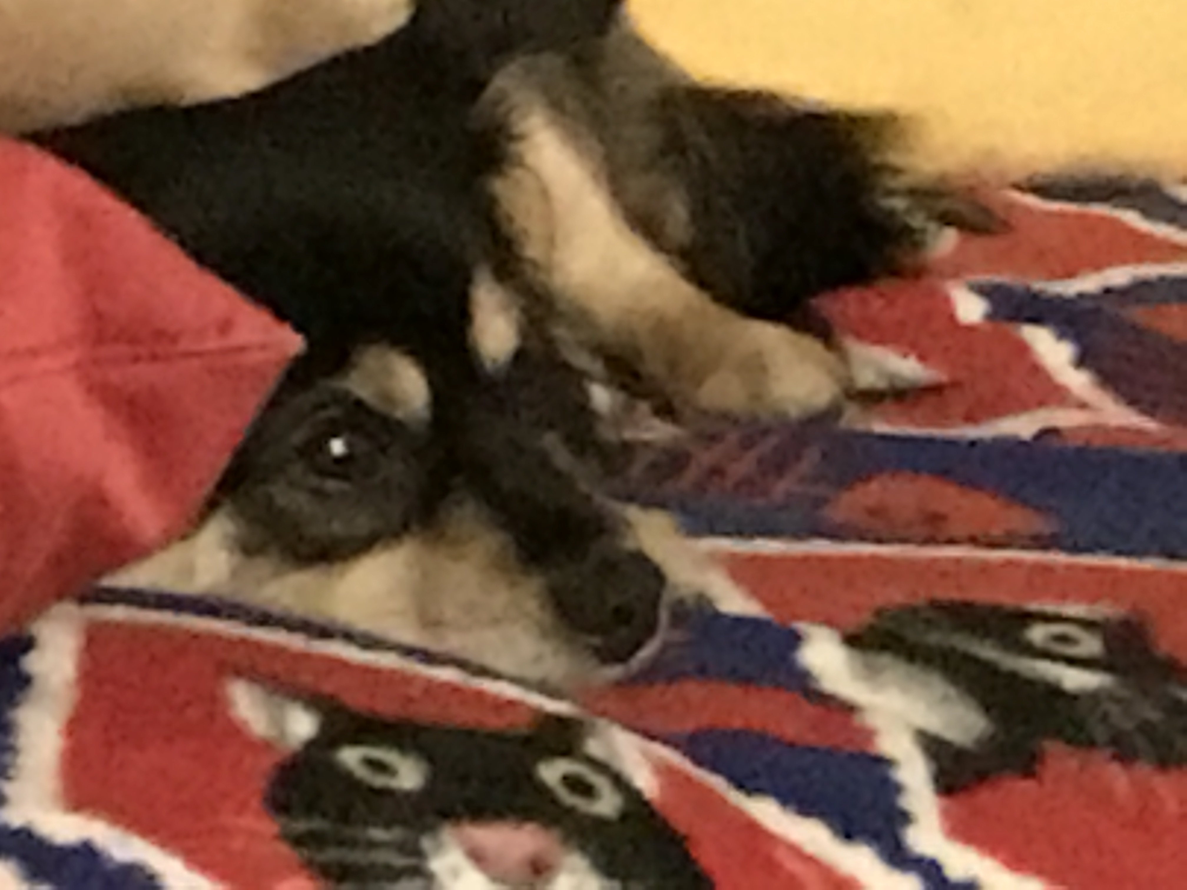 Once it got dark, everyone was watching TV and it drowned out most of the crackers and, as you can see from the pictures, Louise and Sofie were able to snooze right through the ‘1812 Overture.’ I was a little concerned but managed to see myself through until I could go ‘night night’ in my downstairs kennel, with the curtain down, and the music up, and some extra treats.
