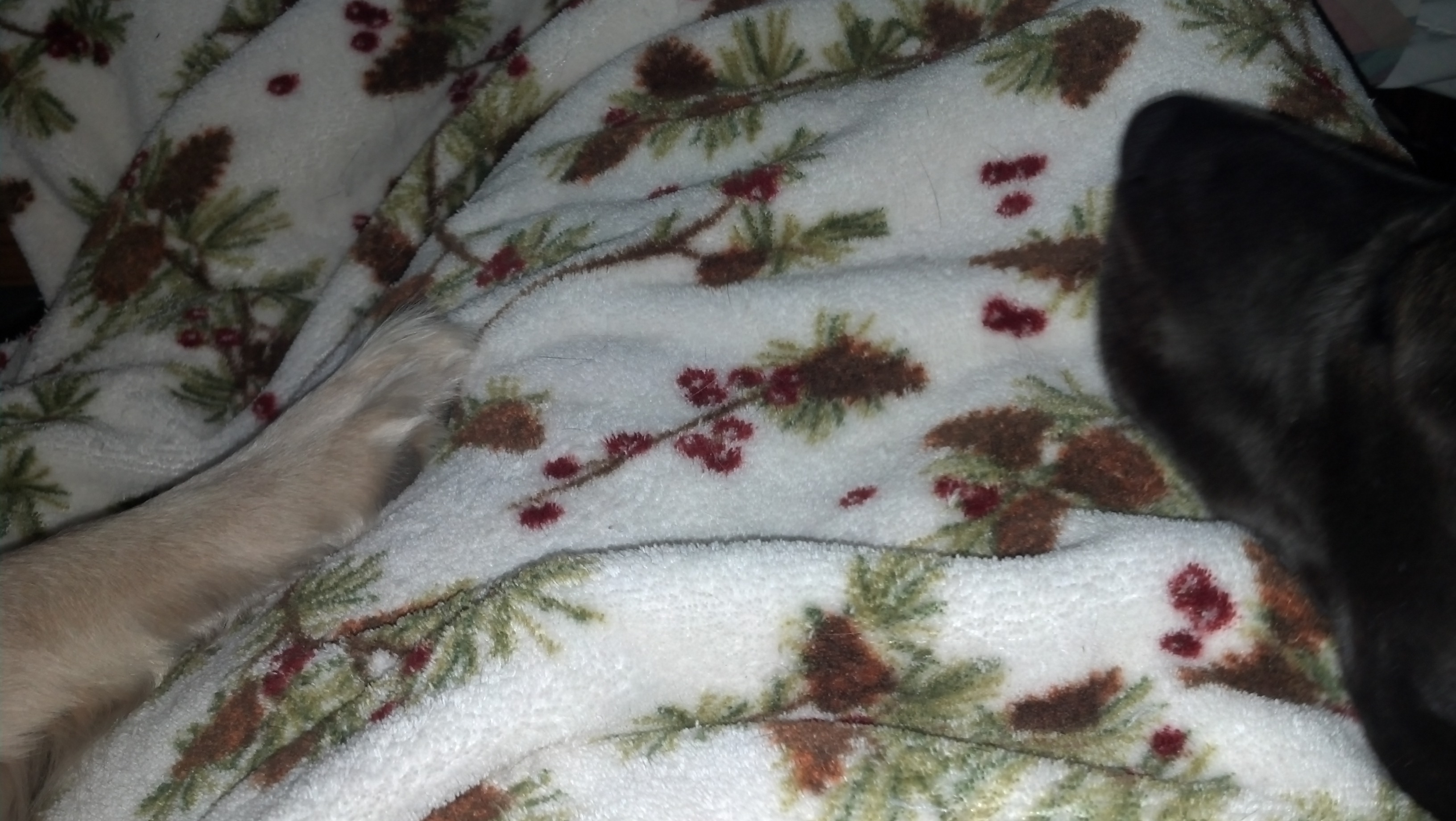 We are the protectors (that is my paw there protecting Mom’s leg) – Sofie