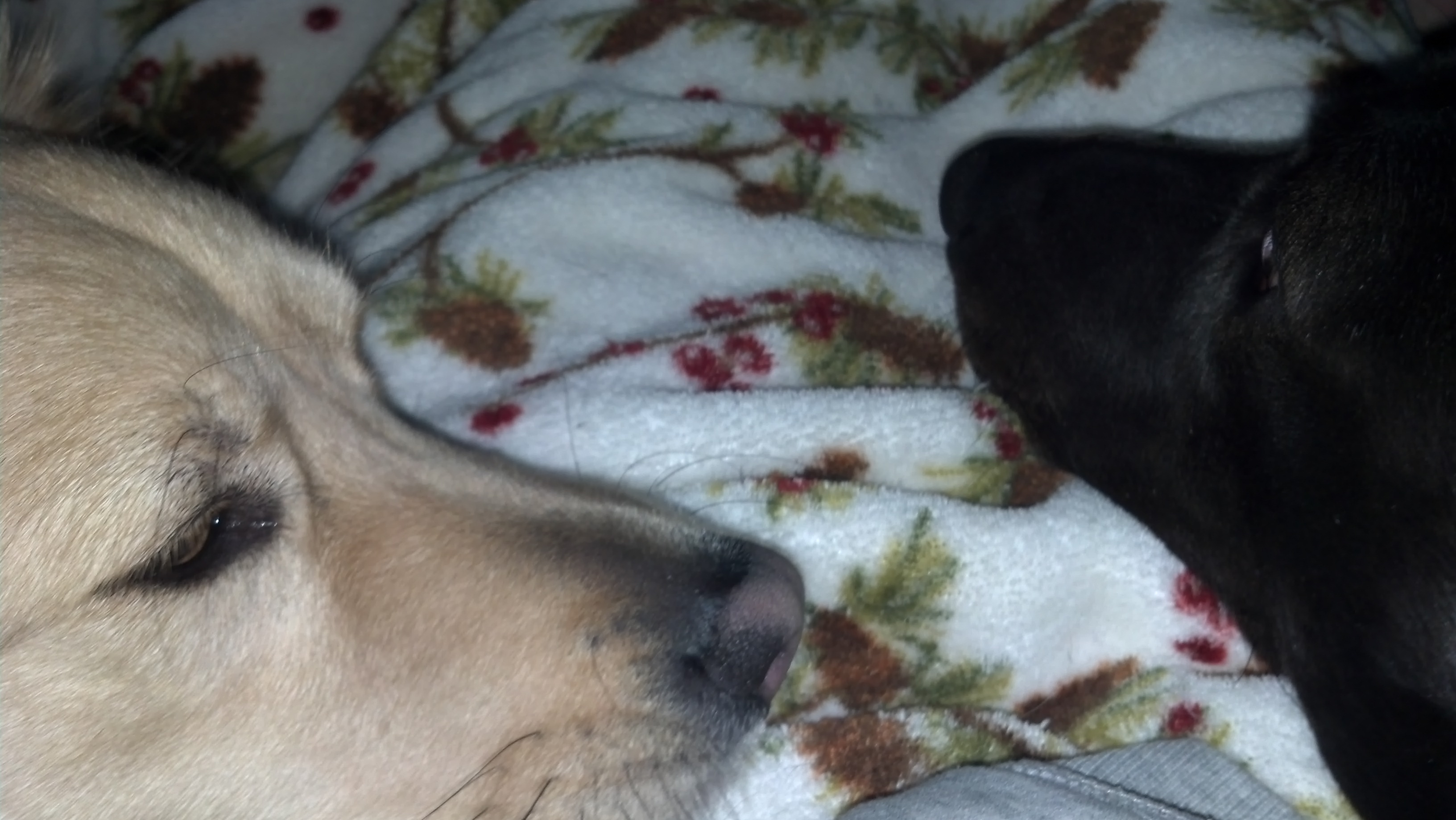Things have been crazy lately. Mom has been traveling the last two weeks even though she ripped her knee. She came home on the weekend to see us, which was nice, but she still could not walk long distances. We have been going to daycare at least every other day when she is gone. She is coming home tonight and we understand that she has cancelled any future trips until she can get through a couple of weeks of physical therapy. We are really going crazy without being able to walk everyday down to the river or around the neighborhood. We know Mommy wants to walk us but it is just to hard for her now. And it doesn’t help her that there is snow on the ground too.