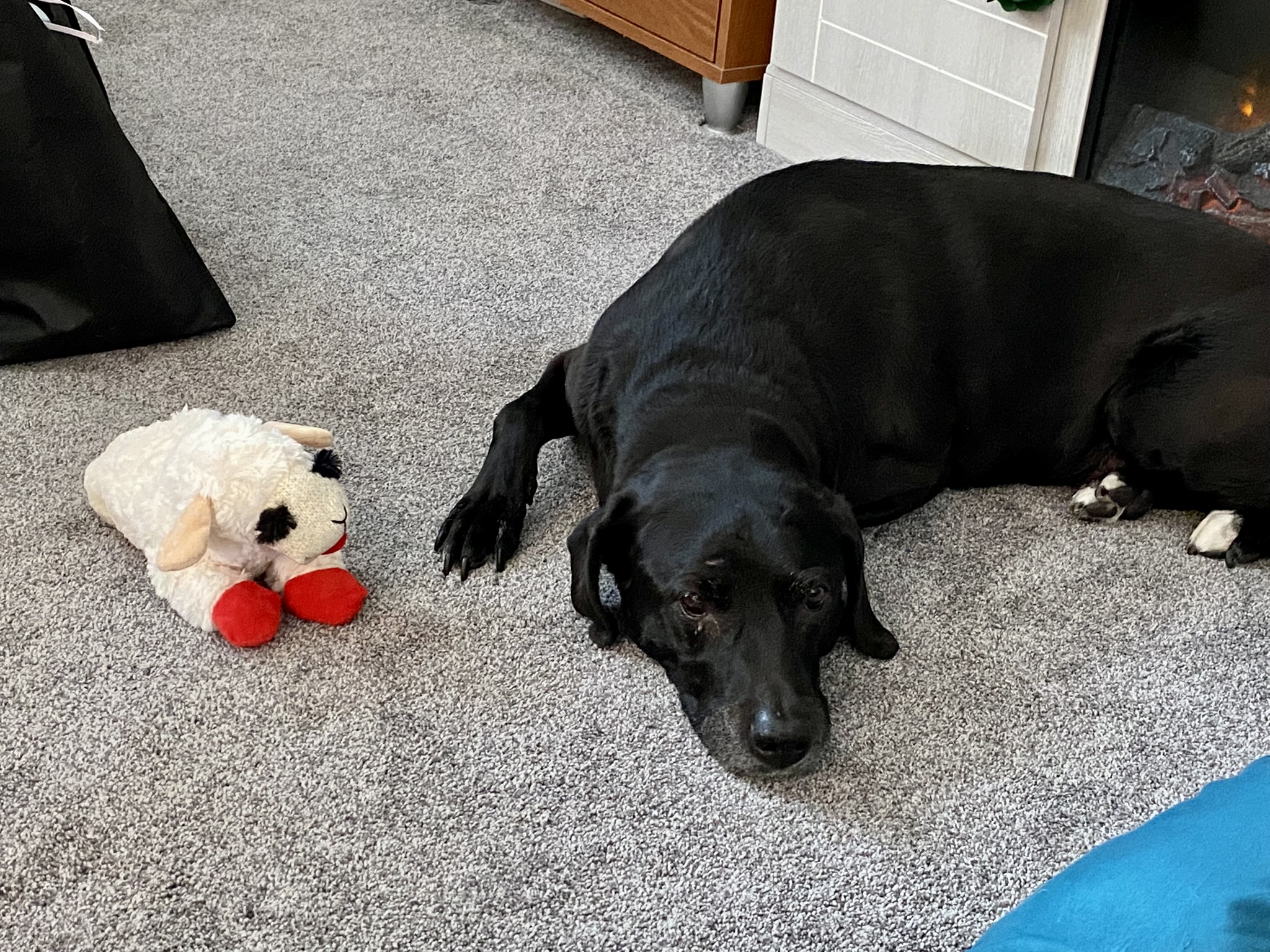We had delayed our Christmas holiday celebration until last weekend because Peanut had COVID. She is doing OK now. The dogs finally got to play with their presents. Louise loves squeaky toys and she got a Lambchop stuffy. But she was not able to bite down on it because of the tumor*. She was frustrated. I did not realize that this would happen.