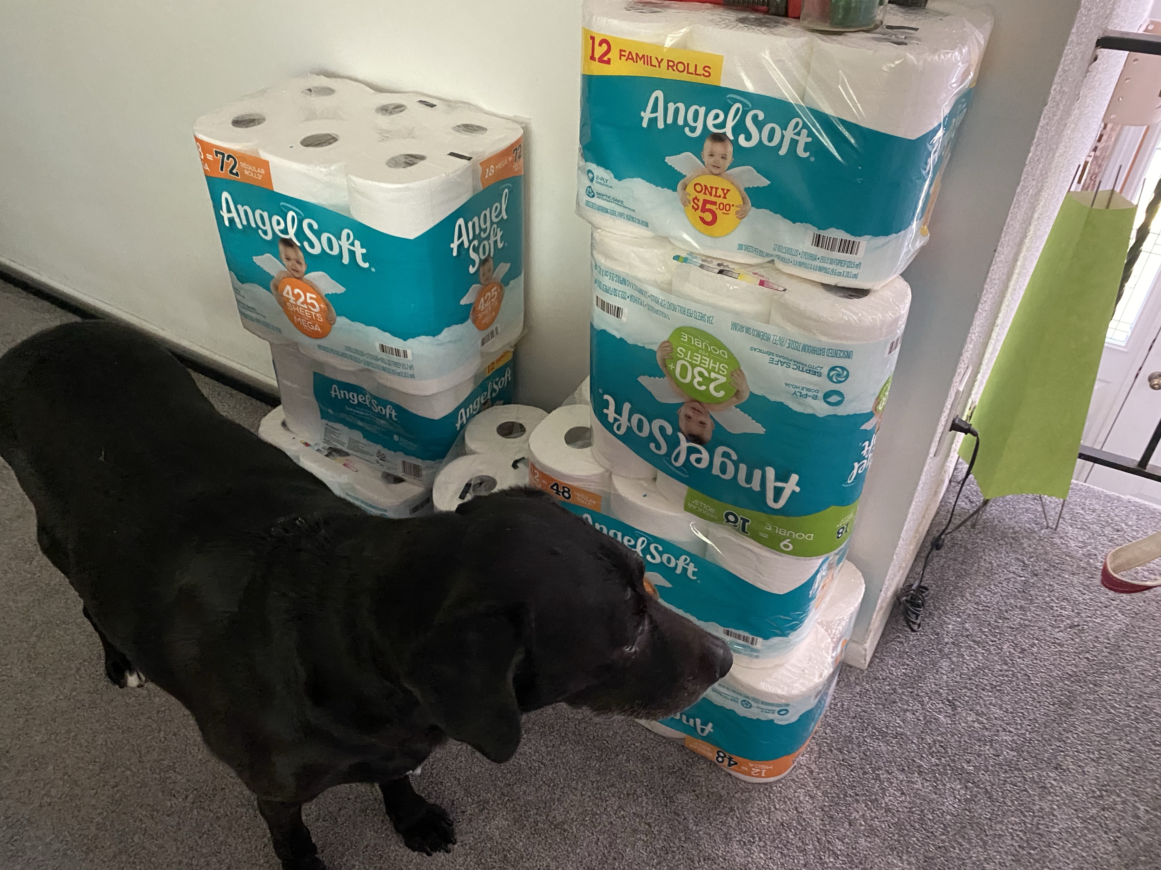 Tags: dog, DogBlog, DogDaz, Dogs, funny dogs, lorian lipton, Mischief Monday, Pet, pets, supply shortage, toilet paper