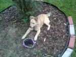 To be honest, years of drought in the Mid-Atlantic has not helped my yard. I am starting to live on sand because all the topsoil is washing away every time it rains . I think it is really hard to discourage digging behavior when the soil is so easy (and fun) to dig. Also, I think there is a mole under the lawn (noted by the tunnels). And, I think Sofie’s lawn digging may have started with trying to get the silly underground moving thing. (Have you ever seen a mole or a shrew? They are truly not nice looking creatures (down right ugly!). Their poor lives are spent trying to get to the light only to be blinded by it. Now that is a weird existence.)