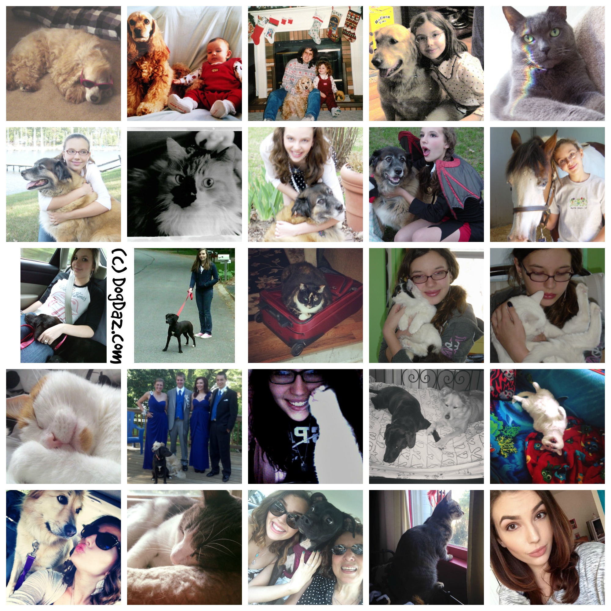 P’nut is walking in her University graduation today. Though she really finished school last December, this is when they do the cap and gown thing. That made me look back at her life so far, and all the animals that I brought into it. I think that raising children around animals is a wonderful and loving lesson. Because I chose to share my life with all these critters, so did P’nut. Since the moment she arrived she was surrounded by fur.