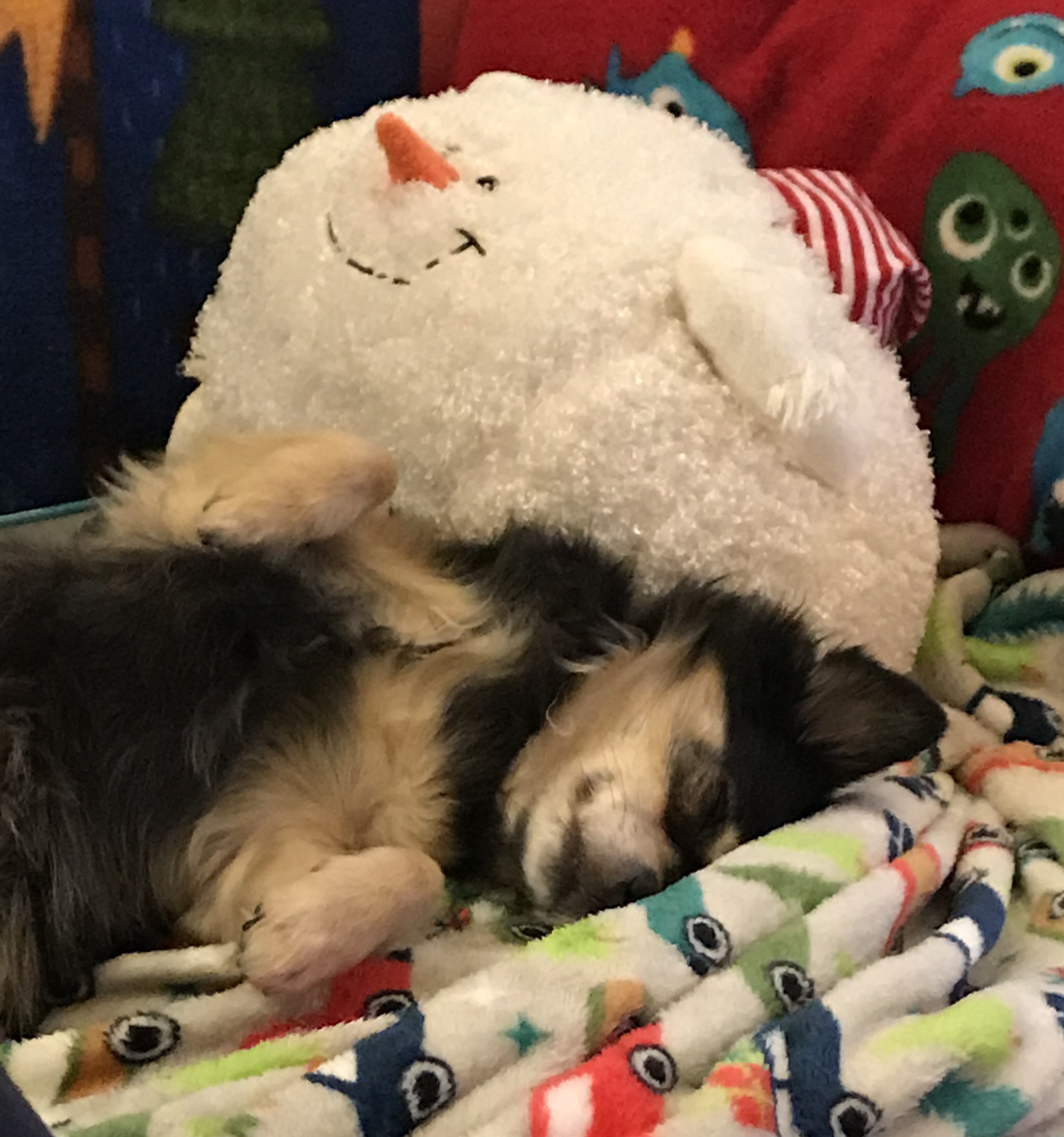 Bearnard is his happy little self, as long as no one new is in the house, there isn’t a delivery driver at the door, or someone or something isn’t passing by (within a mile or 2). He loves to roust Mini as he runs around playing with his stuffies. The interesting thing about Beary is that he will only play with his toys when no one is watching. You come up the stairs and there are a whole bunch of stuffies out of the basket, scattered all over the floor, but you rarely see him in action. The Secret Life of Bearnard the Papillion.