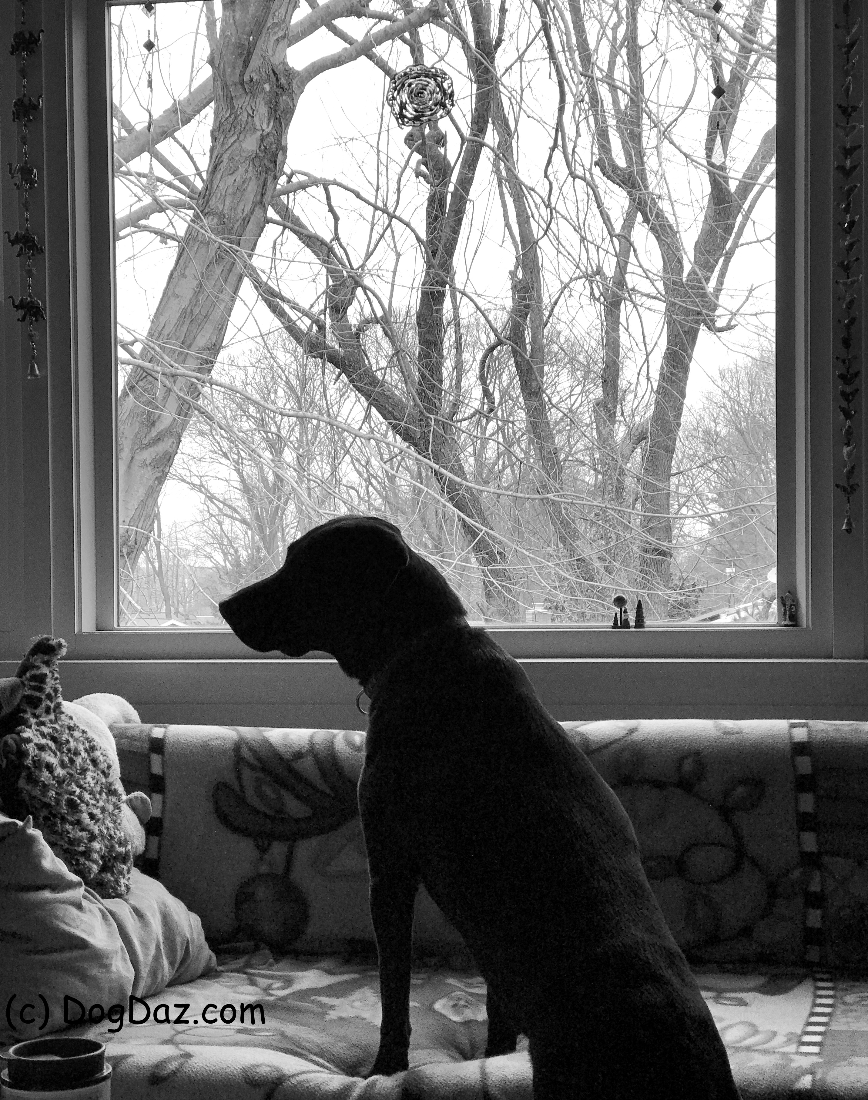 A memorable moment from 2013 (above). Sofie was only 2 (Lu was 3) and it appears from this shot that her full coat had not come in yet (she looks adolescent from the back). Louise and Sofie always wait by the back door to go chase squirrels and birds.