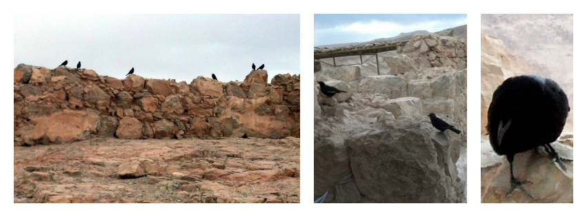 The only life I saw at Masada were the blackbirds with reddish-brown under their wings – are they red-winged black birds – and some little scraggly trees.