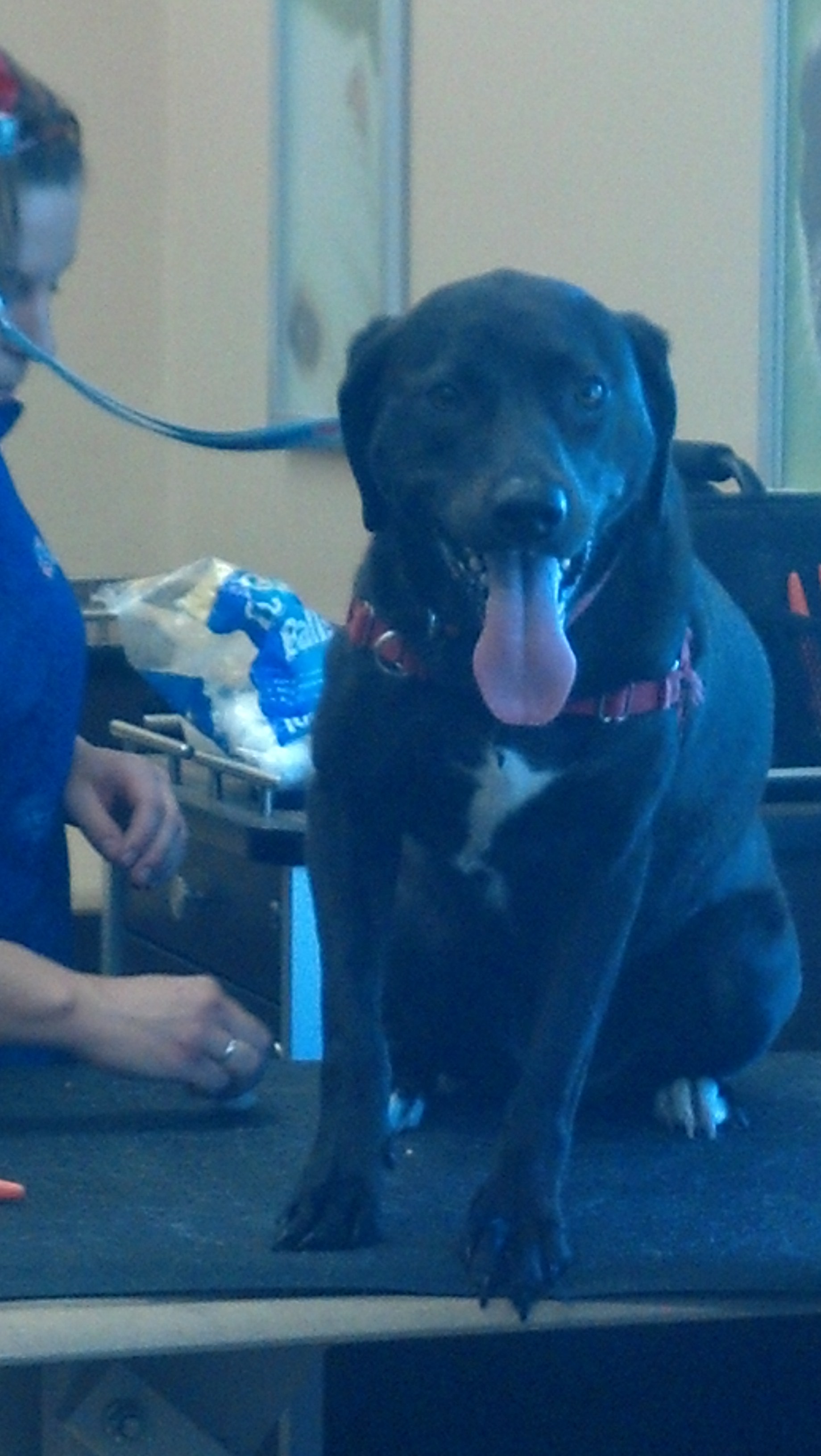 Before we left I had noticed that Louise was licking herself a lot. Sonya, the most wonderful dog sitter in the world, called me while we were away to let me know that Louise had a cut in a very uncomfortable spot. Well, when I got home, it did not look good, so… off we went to Dr. Kate. Louise was not happy. Now she is on antibotics and is suppose to wear the cone of shame, but, I am keeping her with me and monitoring her licking, so that she does not have to go through the same humiliation that her silly little sister, Sofie, just finished going through last month. Sofie, of course, would not stop licking, Louise, is a good listener.