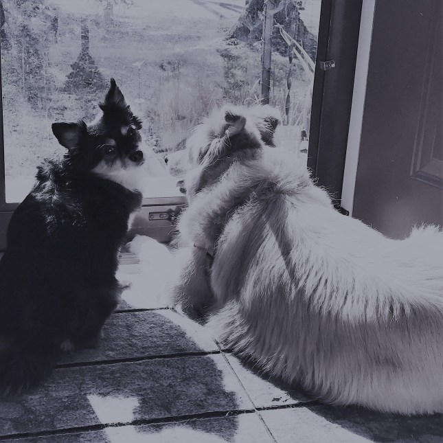 These two are good together when they have a joint mission; like sitting at the top of any stairs and watching for intruders. Charles has begone to bark more than Sofie (if you can believe that?) to keep aliens from attacking the homefront. That includes every package, food delivery driver, or occasional friend of the family.