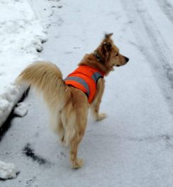 A memorable moment from 2013 (above). Sofie was only 2 (Lu was 3) and it appears from this shot that her full coat had not come in yet (she looks adolescent from the back). Louise and Sofie always wait by the back door to go chase squirrels and birds.