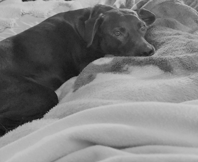 Ever since Louise got sick in the fall she has become a bed hog. When you find yourself sleeping horizontally across the pillows because you can’t stretch your legs out because the dog has taken up most of the bed, you know that your dog is a BED HOG. I am going to start a movement called TAKE BACK THE BED! I am not sure I will win though.