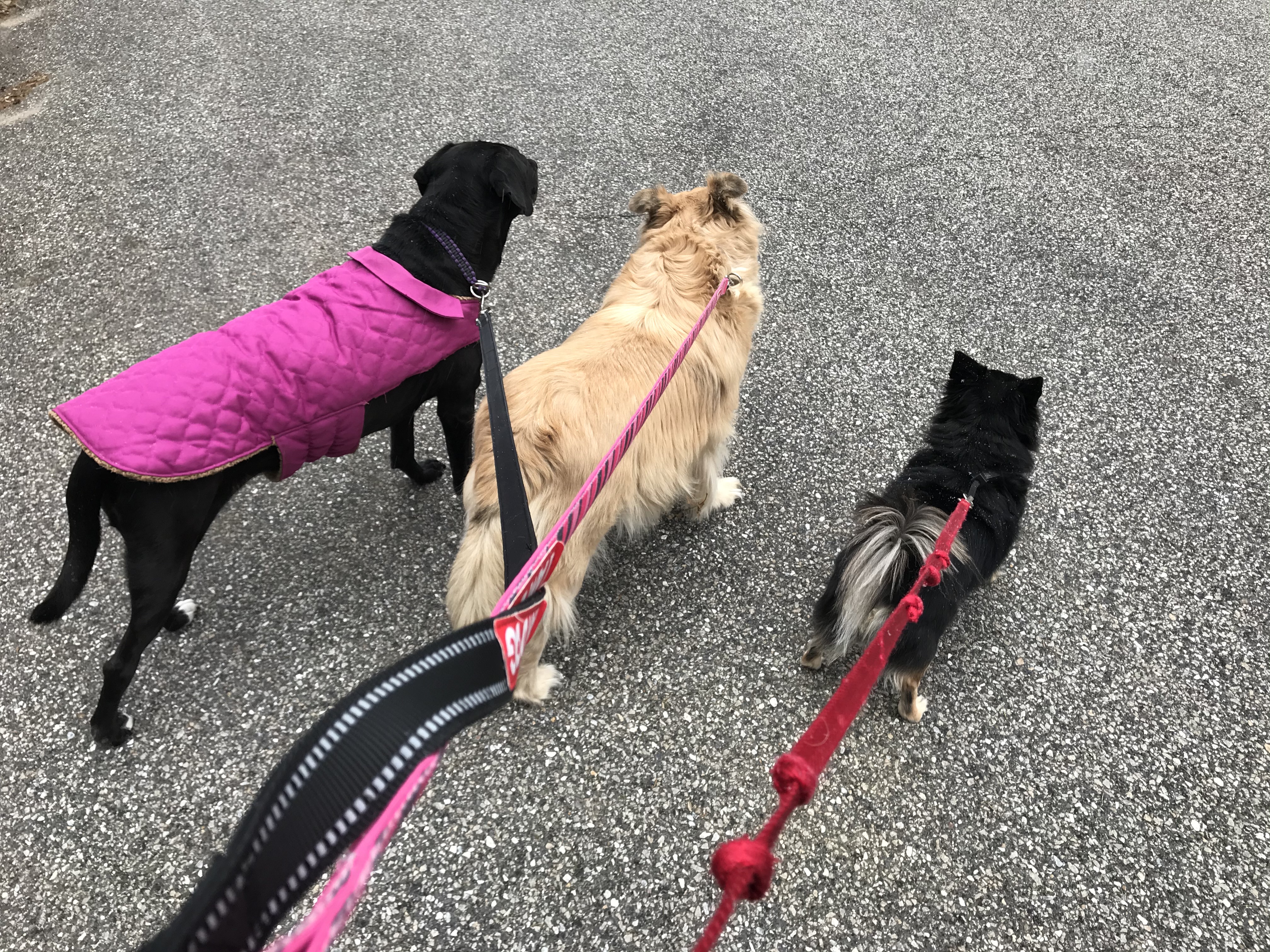 We sure make a mess of the house with all this snow and ice and snow stuck to our furs, and the musher’s gunk she puts on our paws. It takes 15 minutes before she is done suiting us up, then we take a 10 or 15-minute walk, and then it takes 15 minutes to clean up once we are inside again.