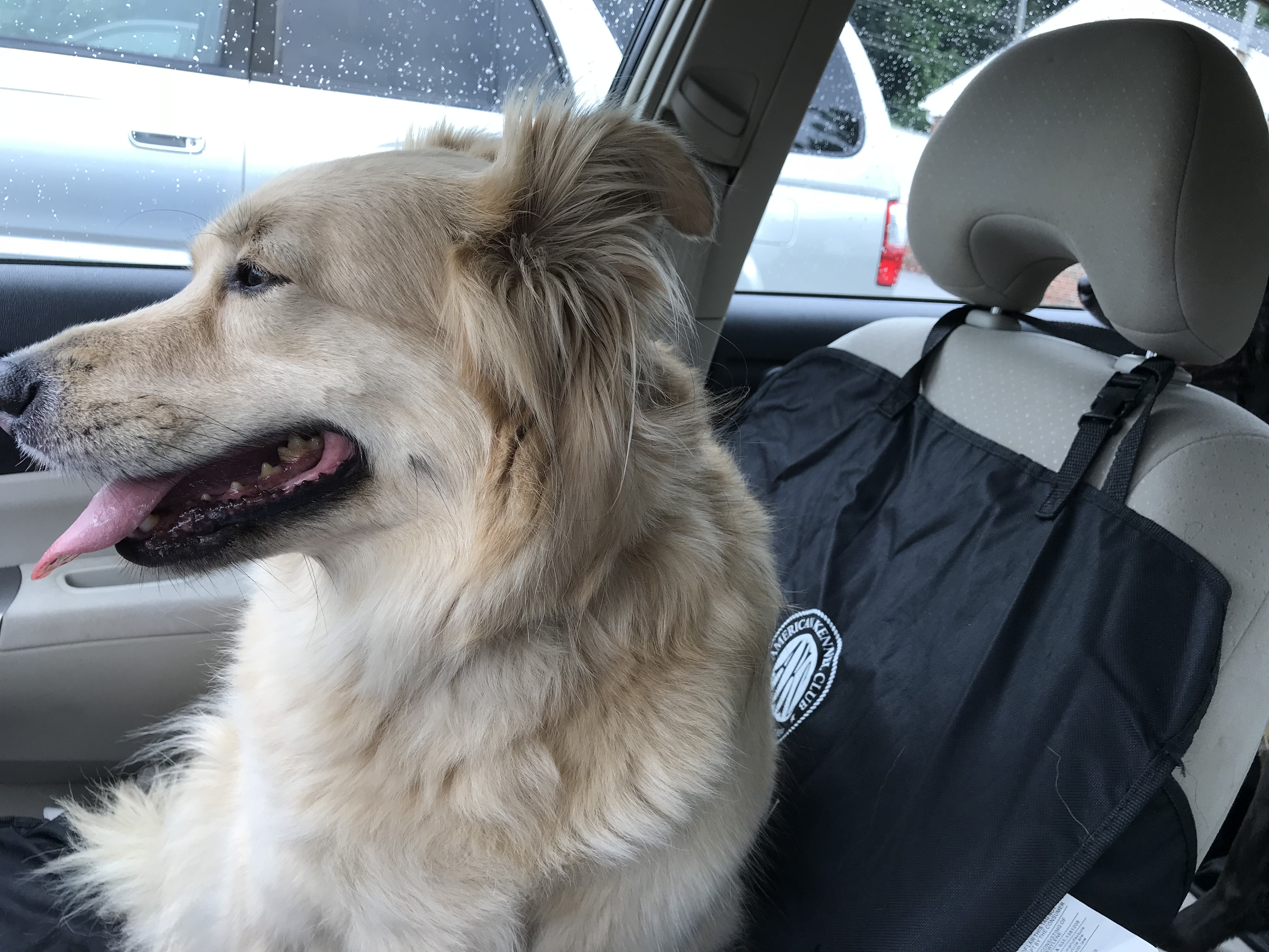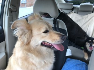 1. Stay cool. It is just too hard to take all 3 into the office at the same time so someone needs to stay in the car. That wouldn’t be a problem if the temperature was moderate but, it was too hot out to leave anyone in the car (96 degrees). I brought my extra key so that I could lock the car while it was running. I turned the air conditioning on high, put on some classical music and locked Sofie in the car with all the comforts of the world. I watched the car from inside the waiting room. It was funny to see people’s faces when they looked in and heard the classical music and a happy dog. I worried the whole time though that someone might break the window if they thought she was locked in a hot car, so maybe next time I’ll make a sign.