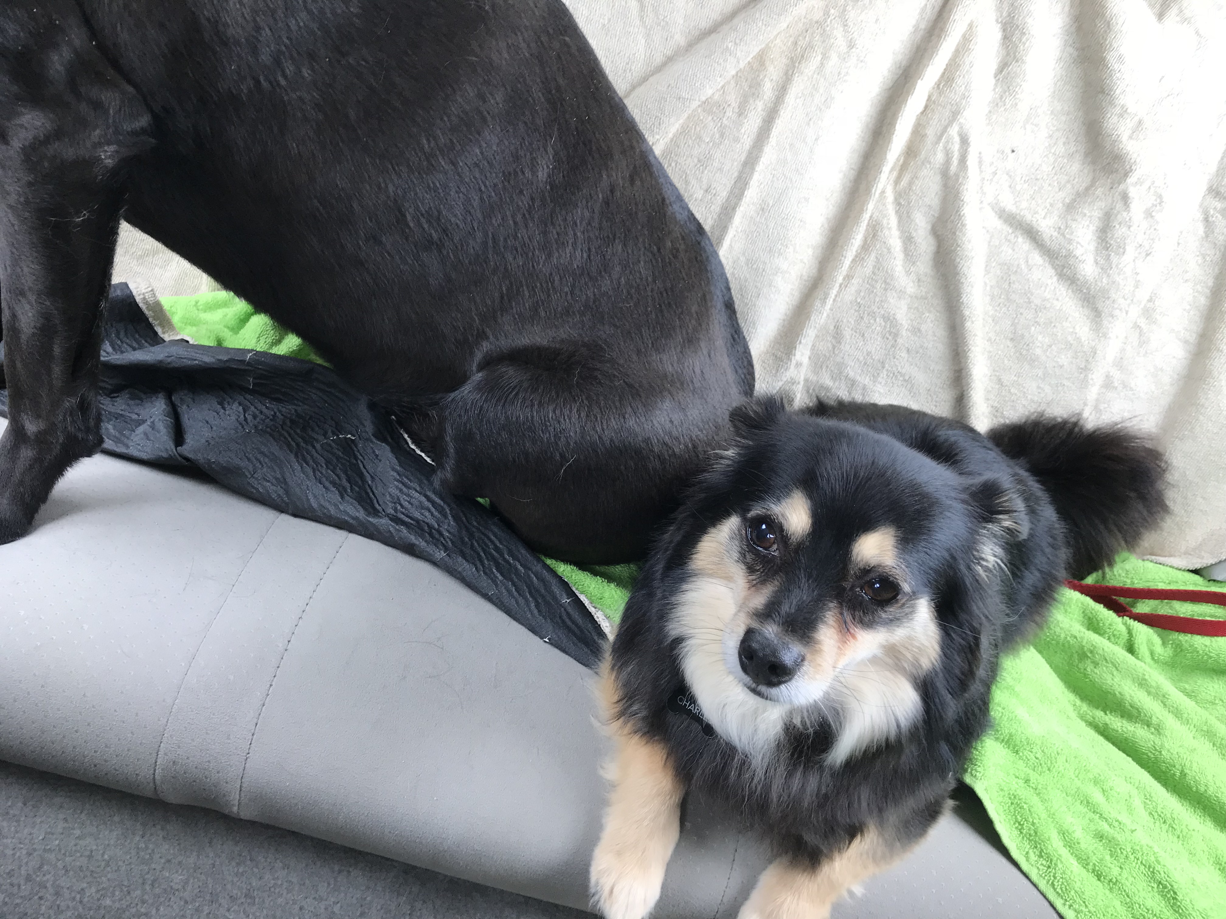 3. Keep Charles safe from Sofie. Sofie is grumpy and Charles is pigheaded. They can get into a big snit, so I never leave them unattended in a stressful situation and I especially wouldn’t leave Charles in the car with Sofie because I don’t trust that she won’t attack him which would be goodbye little boy. Keeping all 15 lbs of Charles safe is a major concern always.