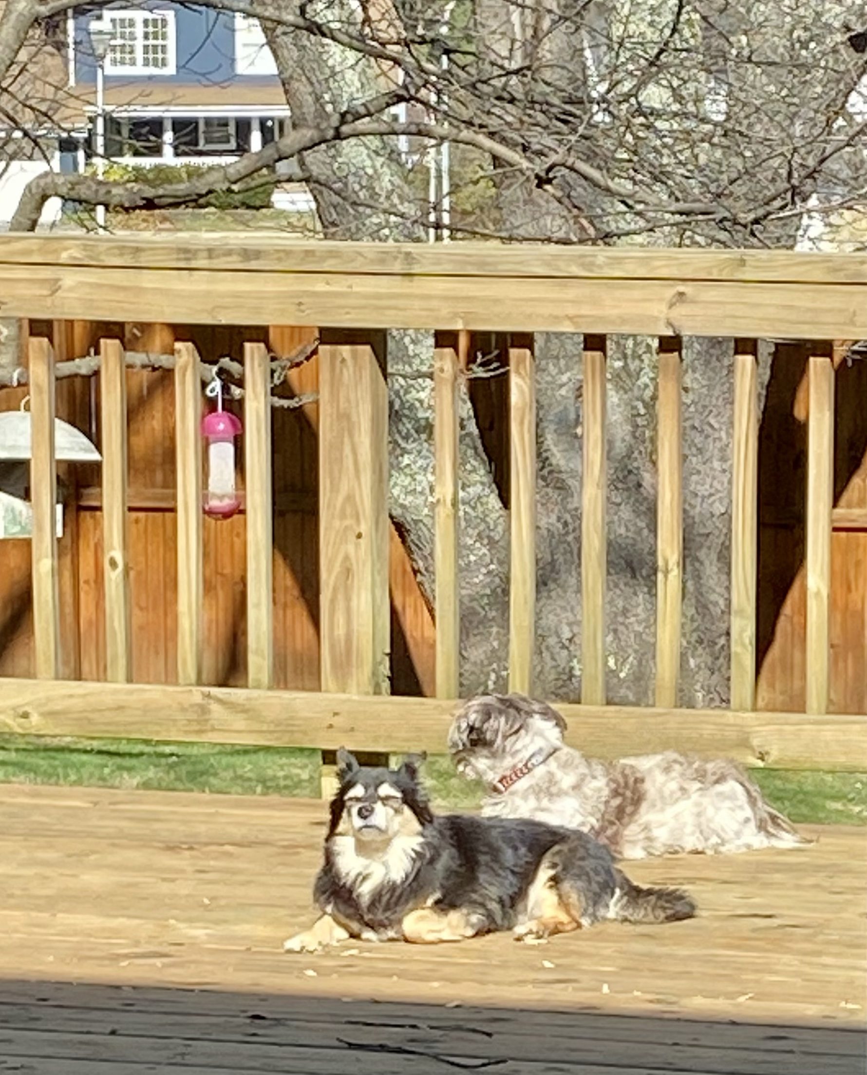 Because Mom works remotely she had to go to K8’s to teach her class. She did have help from Henry and Freddie, her grandcats. She could not bring us because the cats do not know dogs and Mom was worried that they would be mean to us. It was all very chaotic.