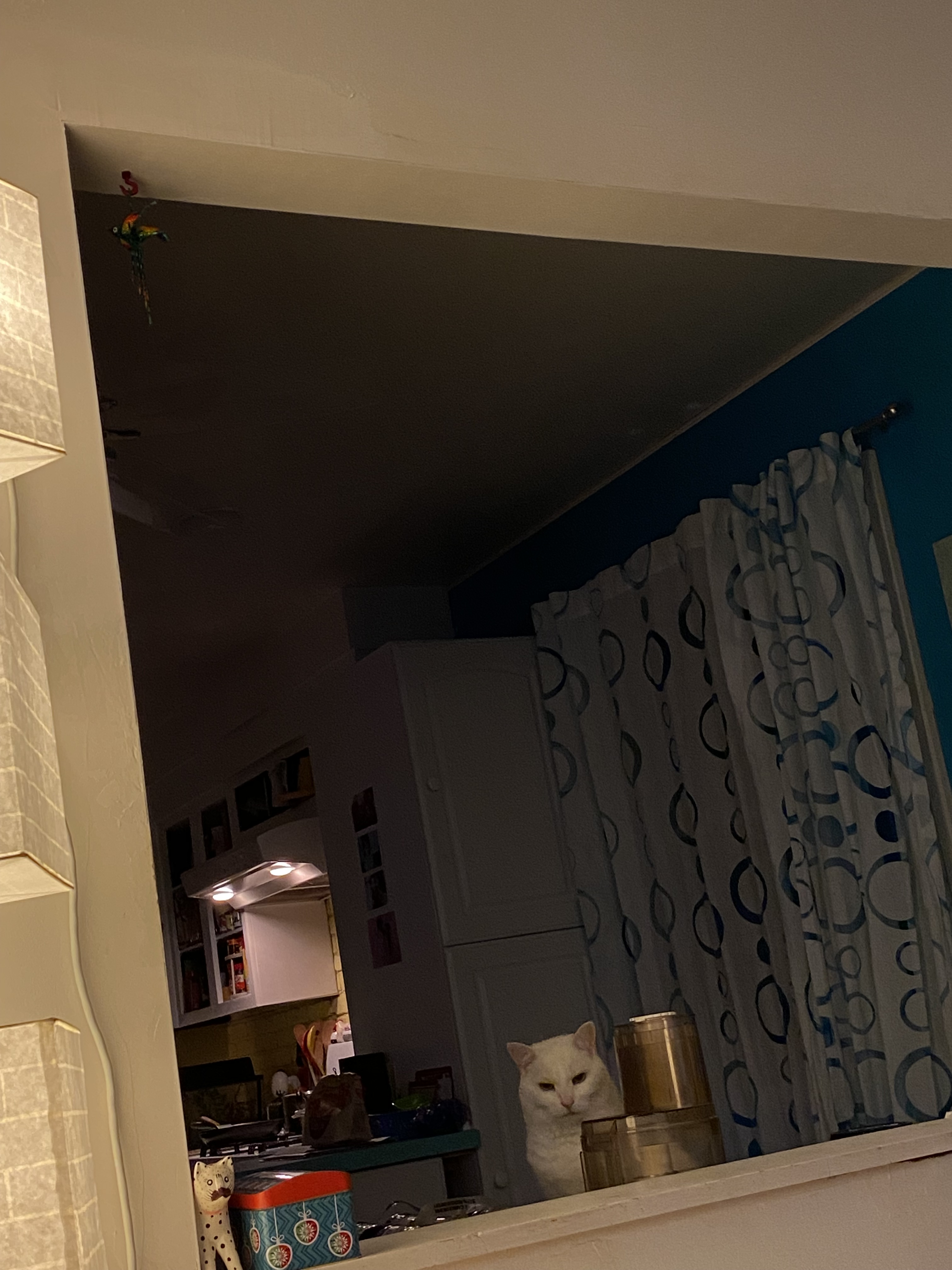 If I ignore her long enough she actually comes into the living room, jumps up on the coffee table, and tries to get in my face about her need for more food. “Meow, meow, meoooooww, meooooow!”